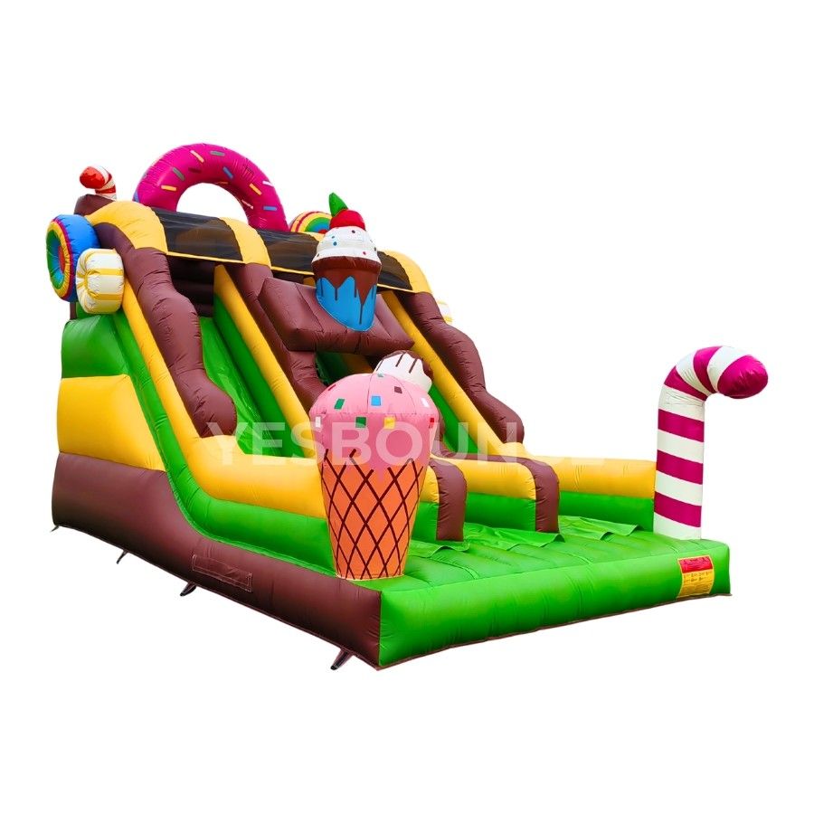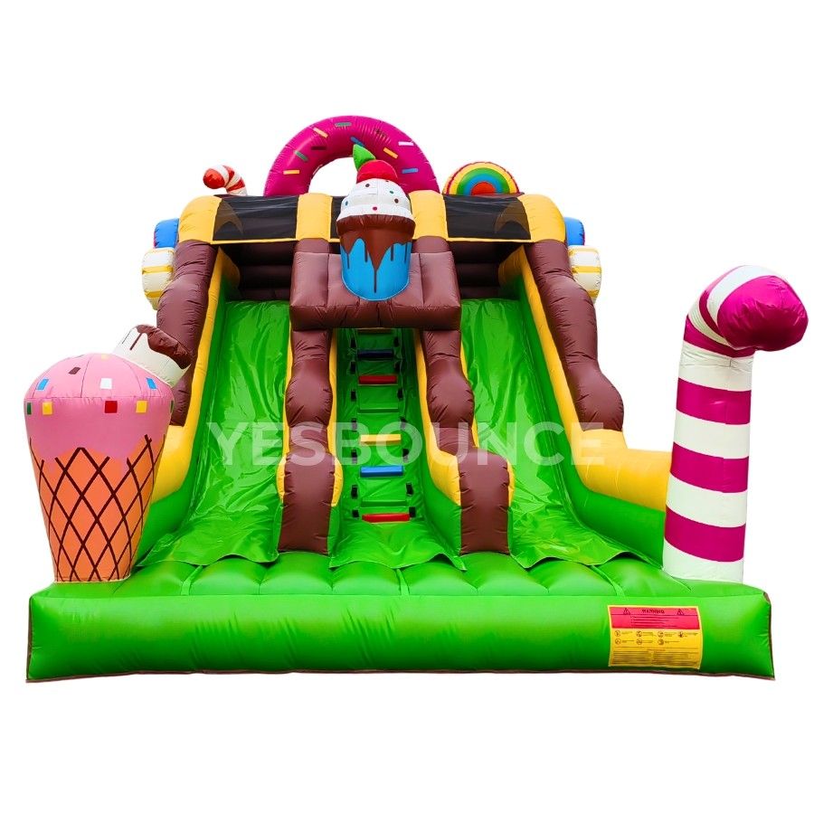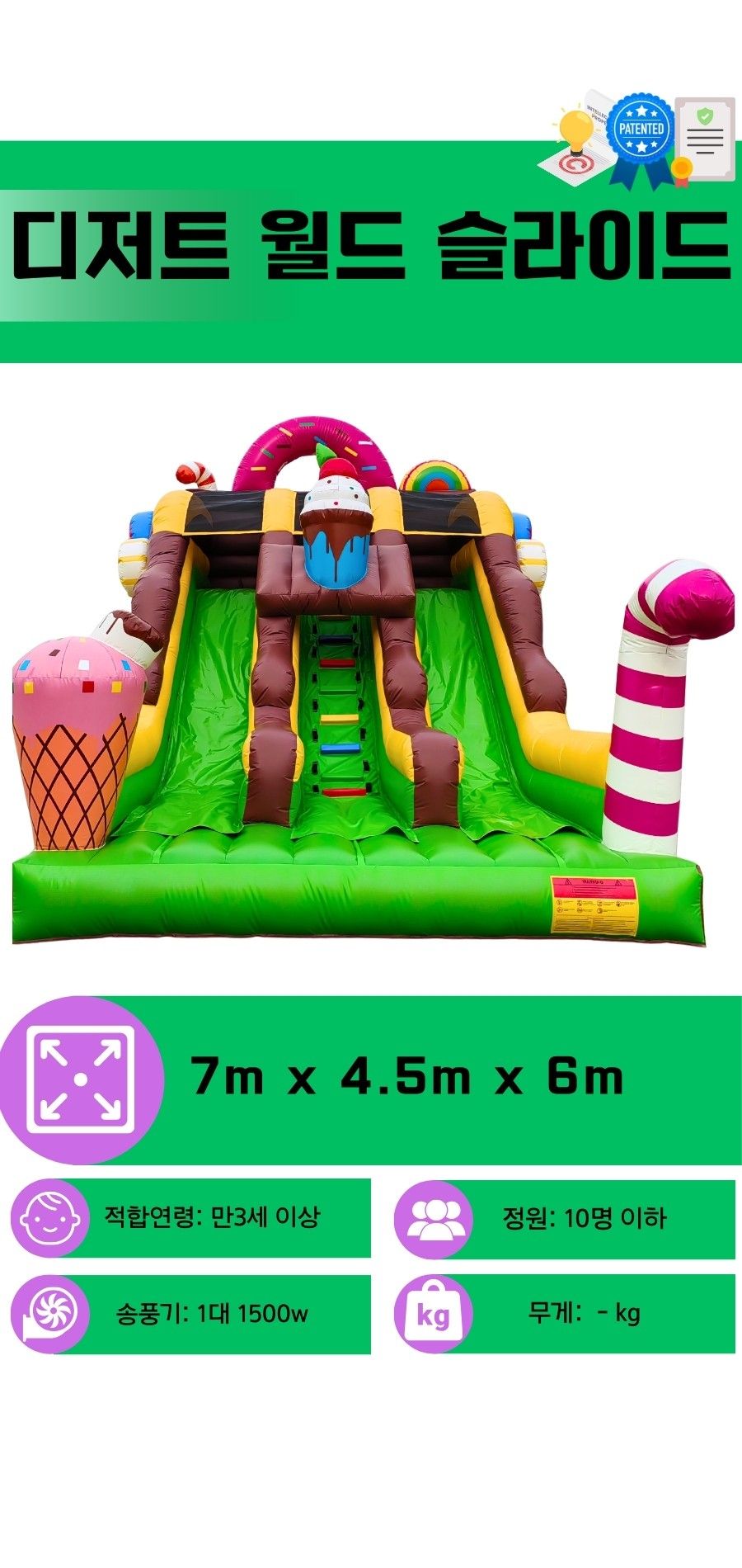 디저트월드 슬라이드는 아이스크림, 사탕, 초콜릿 등 달콤한 디저트 테마가 가득한 대형 슬라이드형 에어바운스입니다. 컬러풀한 디자인과 큼직한 사탕 조형물들이 아이들의 시선을 단숨에 사로잡으며, **유치원, 초등학교, 어린이날 행사, 교회 축제, 실외 놀이 행사**에 최적화된 포토존형 놀이기구입니다. 높이감 있는 슬라이드 구조로 놀이 만족도가 뛰어나고, **아이들이 실제 디저트 월드 속에 들어간 듯한 몰입감 있는 체험**이 가능합니다. 예스바운스는 서울, 경기, 인천, 대전, 광주, 대구 등 **전국 어디든 설치 가능**하며, 행사 당일 철저한 소독 및 안정적인 운영으로 고객 만족을 보장합니다.