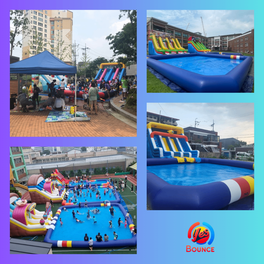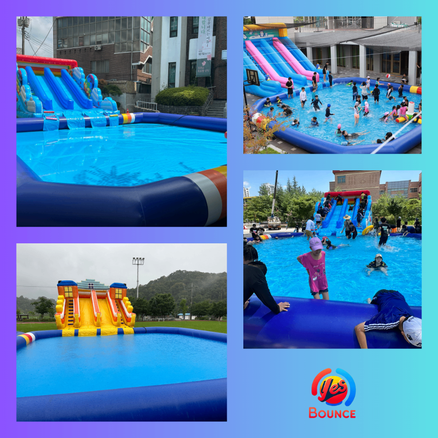 학교, 교회, 마을행사에 최적화된 대형 워터슬라이드 세트로,많은 인원이 참여하는 물놀이 행사에 강력 추천되는 인기 상품입니다. 예스바운스는 서울, 경기, 인천, 대전, 대구, 광주 등 전국 모든 지역에서 워터슬라이드 대여가 가능합니다.