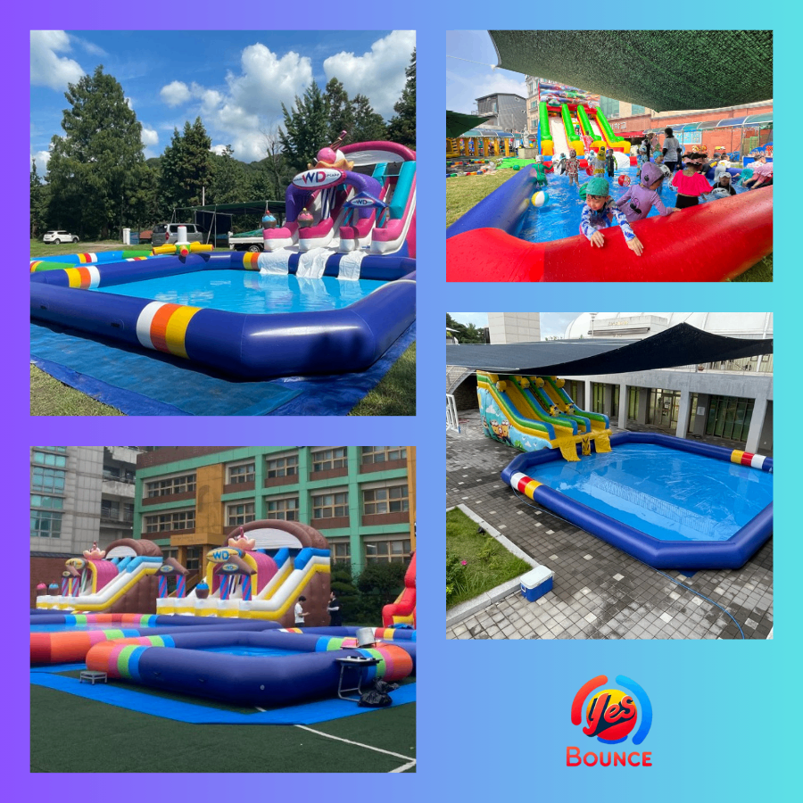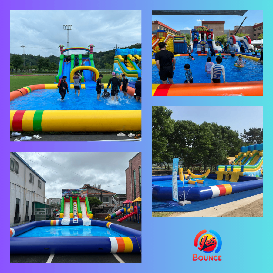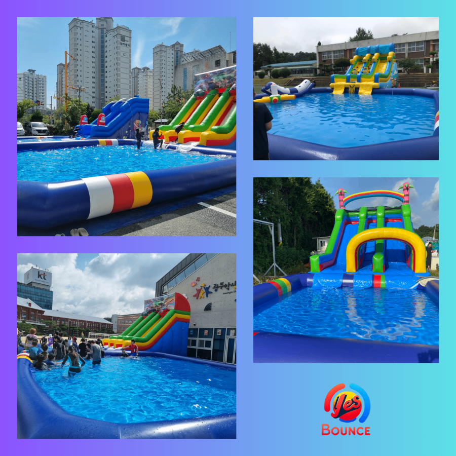 초등학교 행사나 지역 여름축제에 인기 있는 실속형 워터슬라이드 세트입니다. 예스바운스는 서울, 인천, 수원, 천안, 대전, 대구, 광주 등 전국 어디든 설치 가능한 워터슬라이드 대여 전문 브랜드입니다. 중형 세트로 안전하고 에너지 넘치는 여름 물놀이를 준비해보세요!