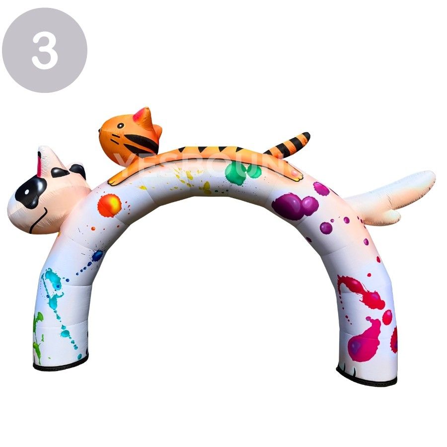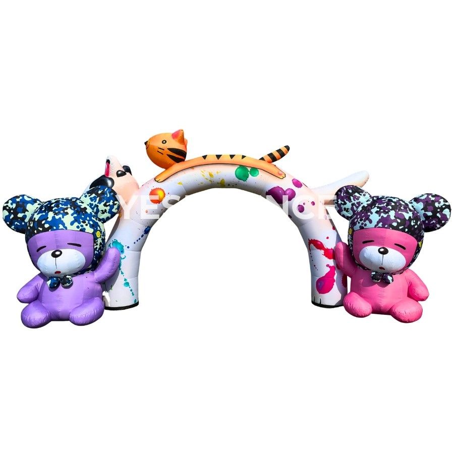 곰고양이 아치 조형물은 유치원 및 어린이집 행사에서 놀이존 입구 연출과 포토존 구성에 활용 가능한 에어 구조물입니다. 어린이 행사 공간을 밝고 귀엽게 연출할 수 있으며, 에어바운스 및 놀이기구 대여 시 함께 구성 가능합니다.